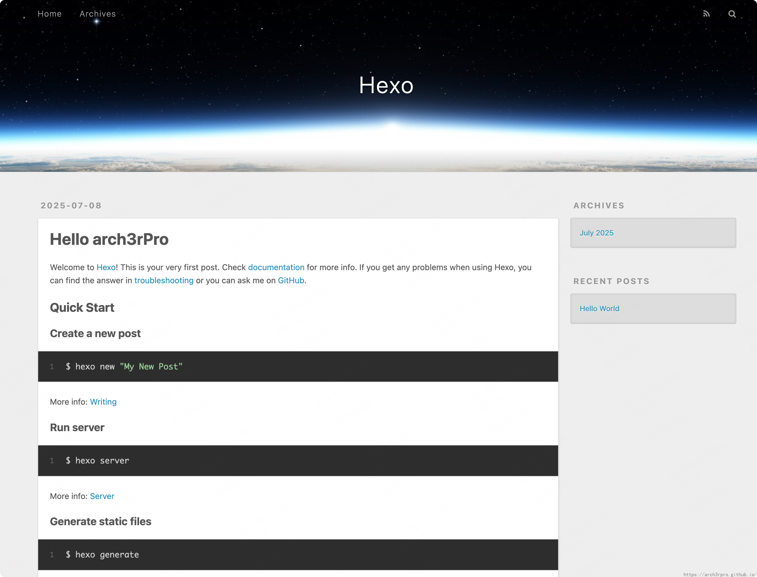 $ hexo new "Hello Hexo"