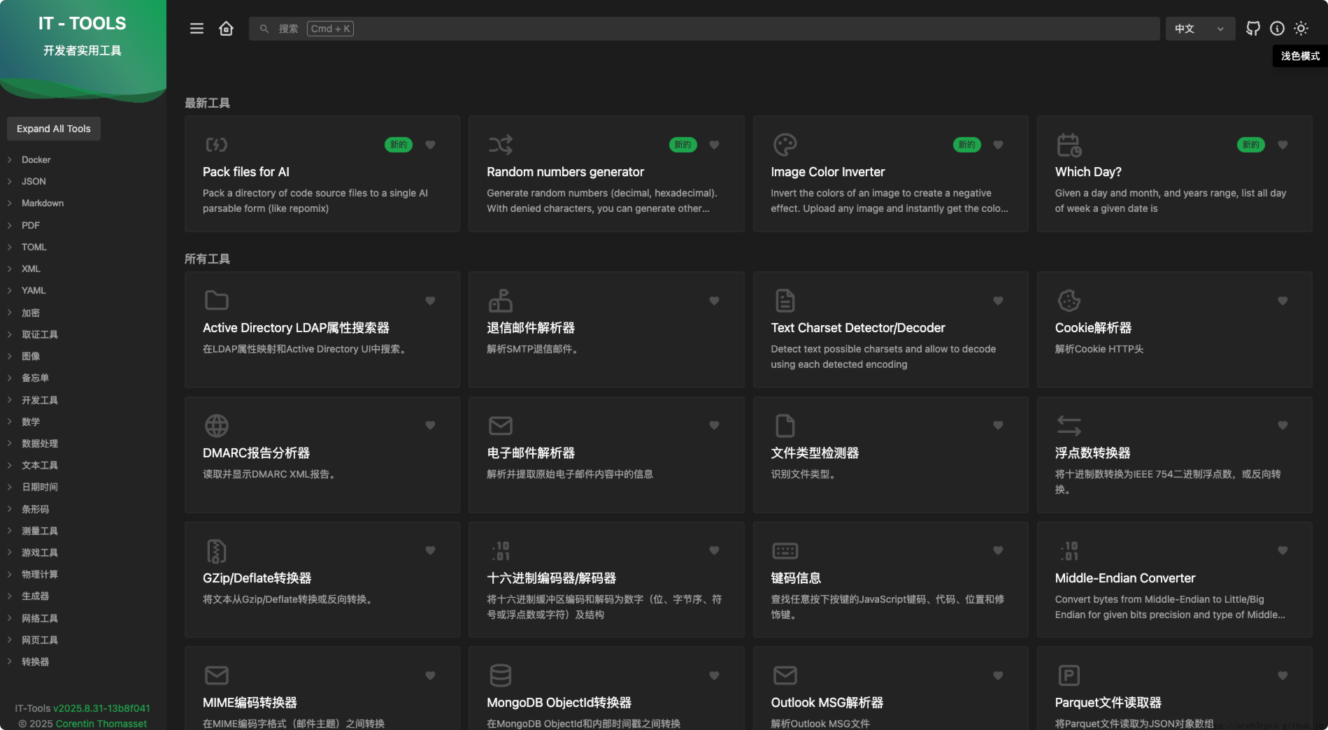IT-Tools 是为开发人员和IT从业者提供的便捷在线工具集合,具有出色的用户体验。这是一个增强版本,包含了原版IT-Tools的所有功能以及社区贡献的额外工具。