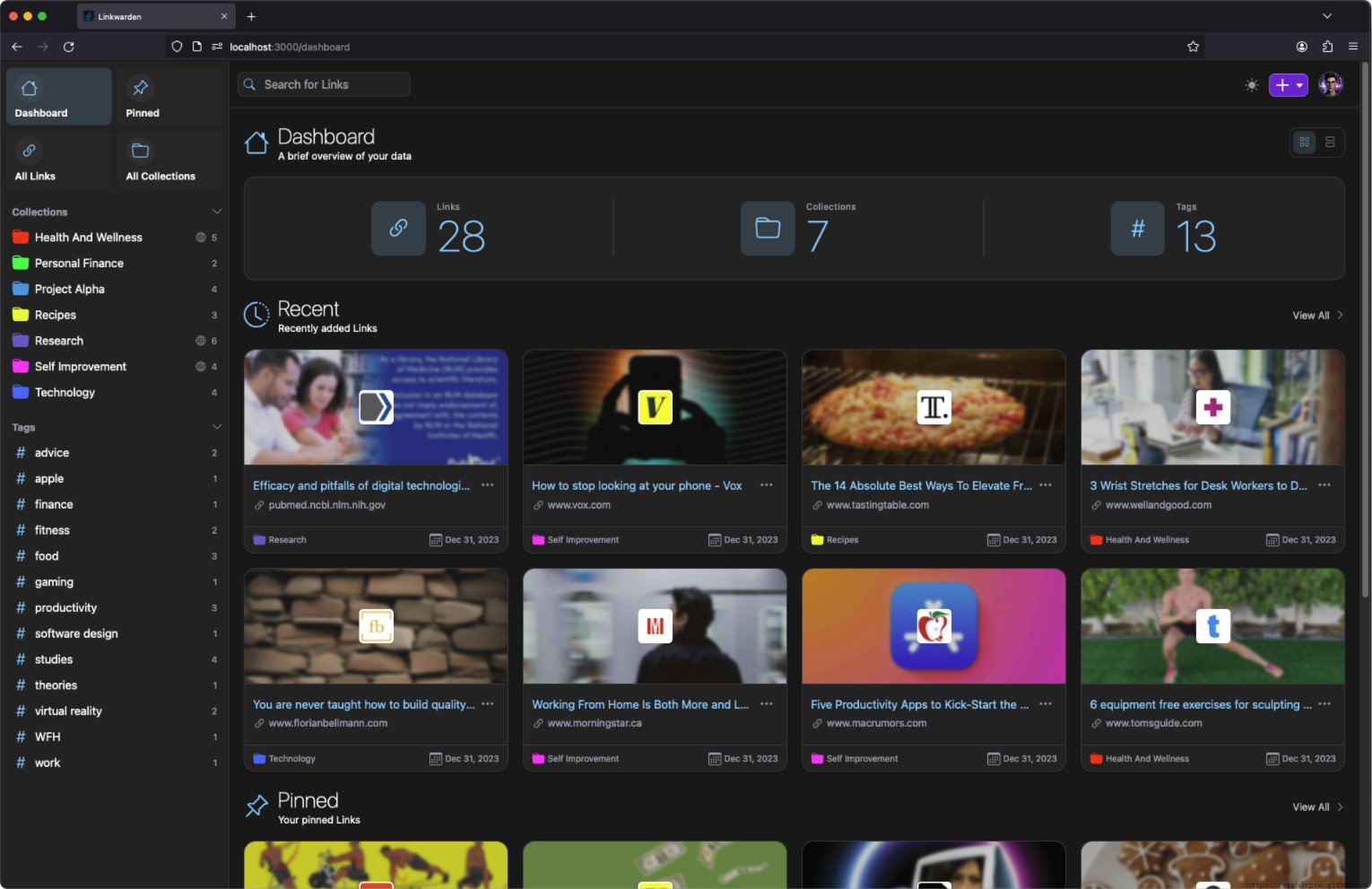Linkwarden 是一个自托管、开源的协作书签管理工具,支持网页归档、团队协作、全文搜索等功能。