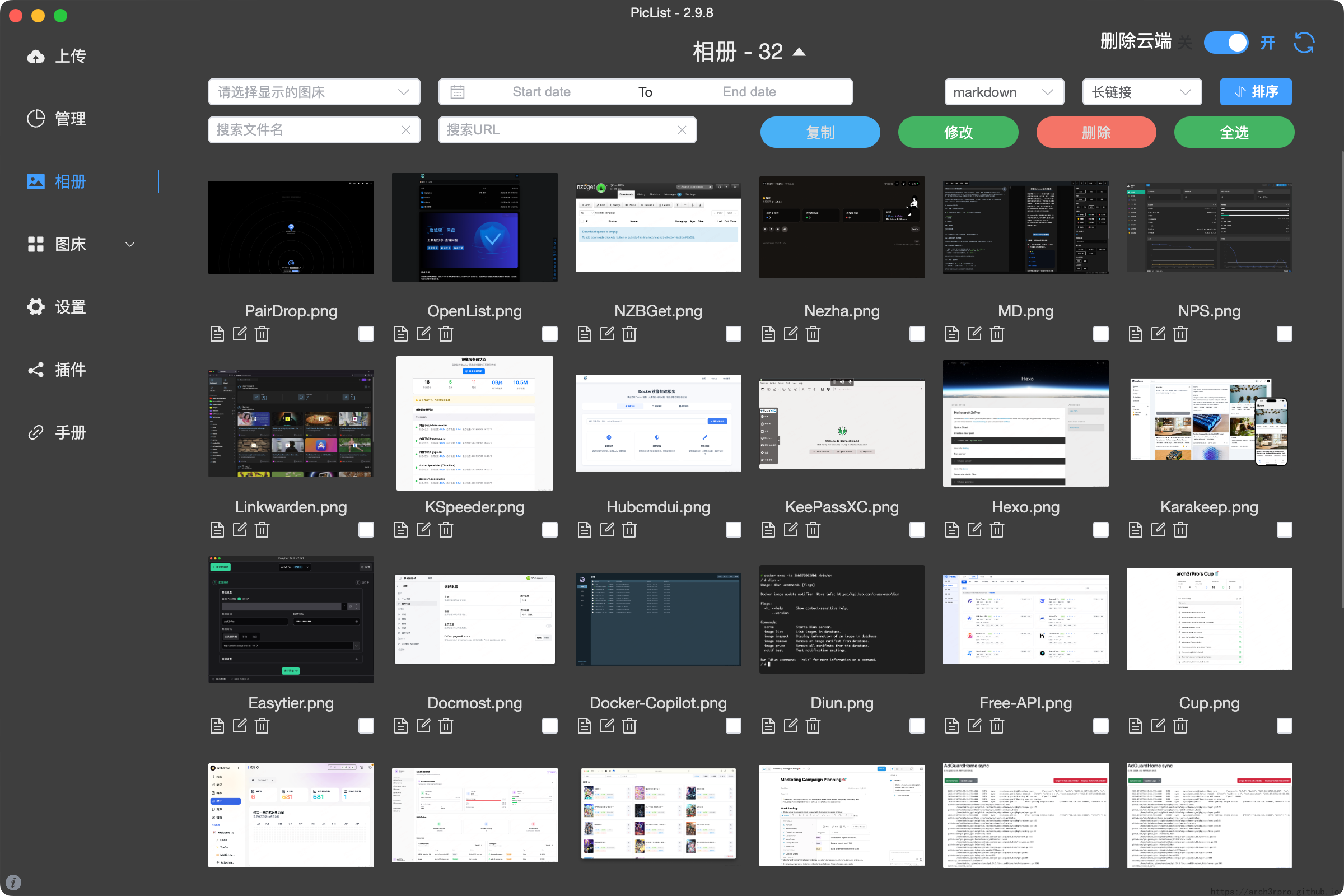 - 云端同步相册:支持同步删除云端图片,兼容所有内置图床和多个插件